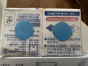 10.円を半分に切った牛乳パックにそれぞれ貼る。