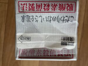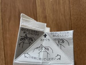 5.パックの上部を写真のように切って、折る。(2本作る)
