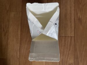 1.牛乳パックの上部に切り込みを入れる。(反対側にも)